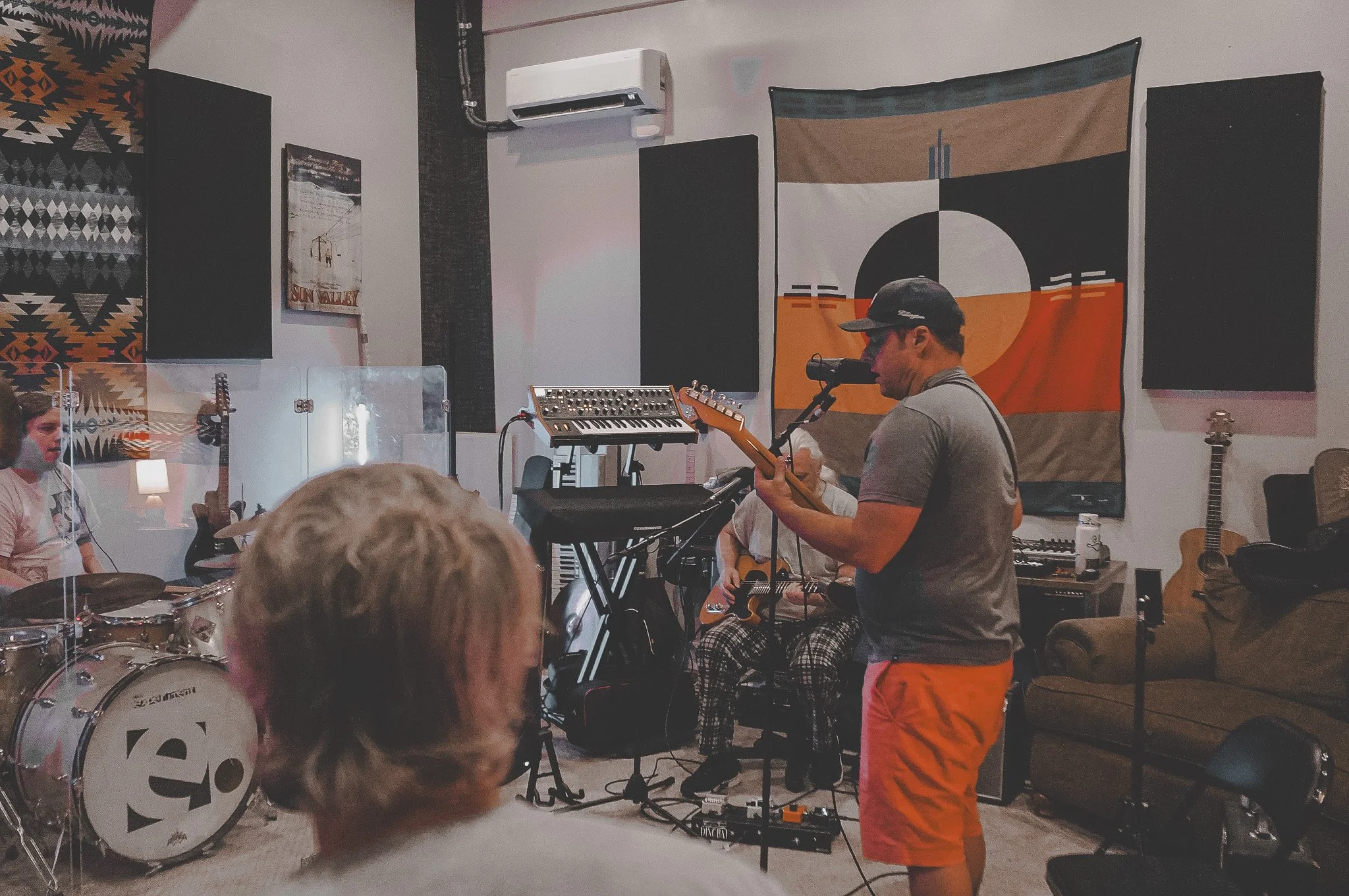 The Lounge - Hosts an acoustic jam, with some light sound systems (board, pa speakers, DI boxes, etc.) to help keep volume to an acoustic level, but amplify voices and percussion instruments.